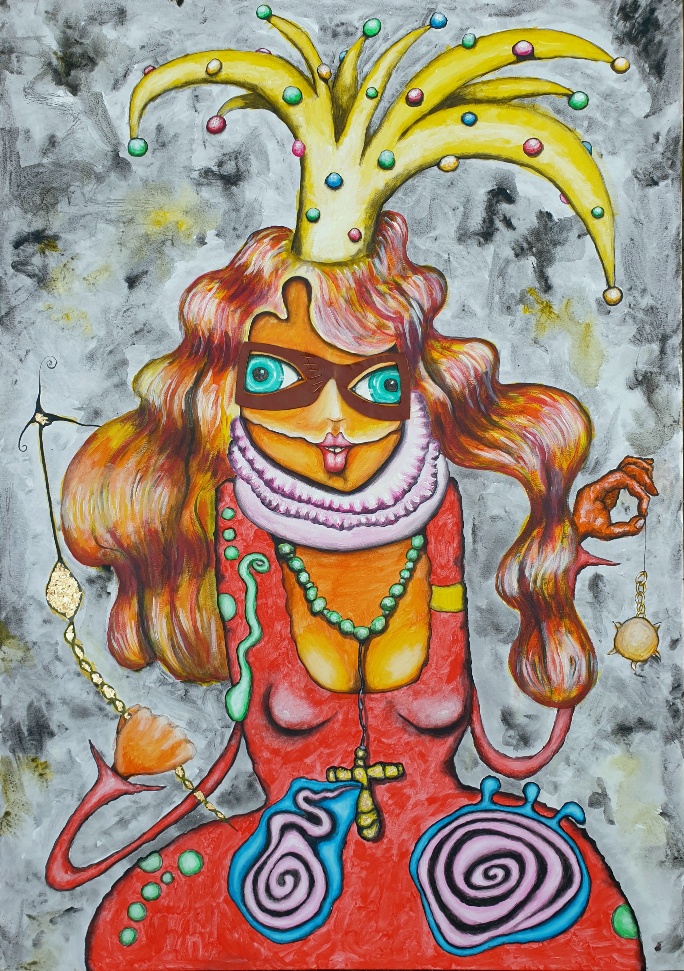 königin der politik / queen of politics / królowa polityki - Acryl auf Leinwand+Leder+Kunststoff , 70 x 100 cm