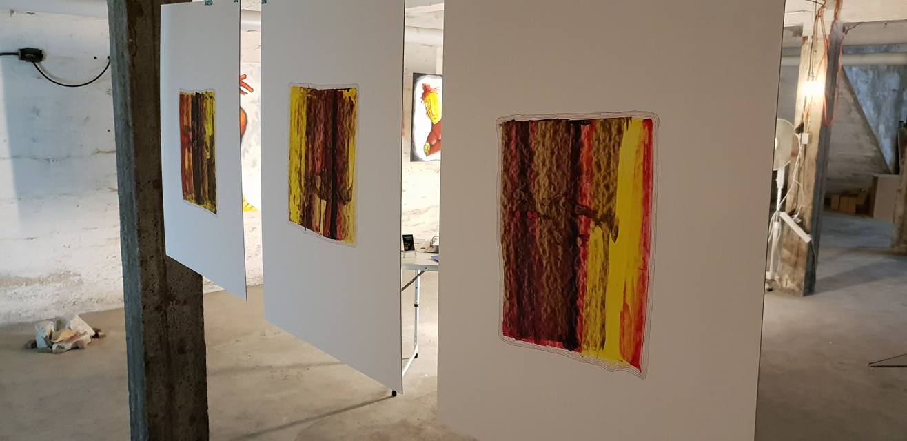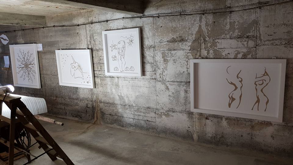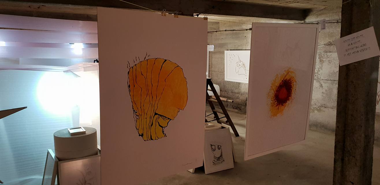 Deswegen wahrscheinlich haben sich auch einige von ihnen in „kellart“ verirrt, was mich besonders gefreut hat. Vielen Dank an alle die sich gewagt haben in die Katakomben zu steigen um sich mit meinen Werken auseinander zu setzen. Viele von Euch sind mittlerweile Stammgäste geworden. Auch danke an die, die nur geguckt haben (ohne sich mit den Werken auseinander zu setzen 😉 ). Die Begeisterung der Besucher macht mich immer etwas sprachlos und unsicher, ist jedoch sehr schön – ich kann nie genug davon haben. Die „normalen grimanns“ sind wie gewohnt angenommen worden: mit einem grübelndem und einem grinsendem Auge. Die neuen Sachen (vor allem die geschnittene Wellpappe) lösten eine Begeisterung aus! Vielleicht mache ich ab und zu weiter damit, schauen wir mal 😉